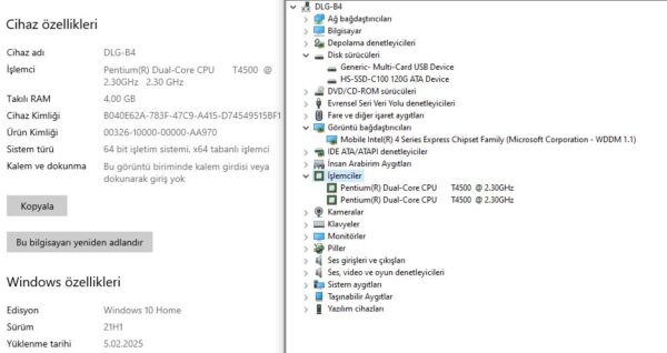 İşlemci Intel Pentium Dual-Core T4500 2.30 GHz