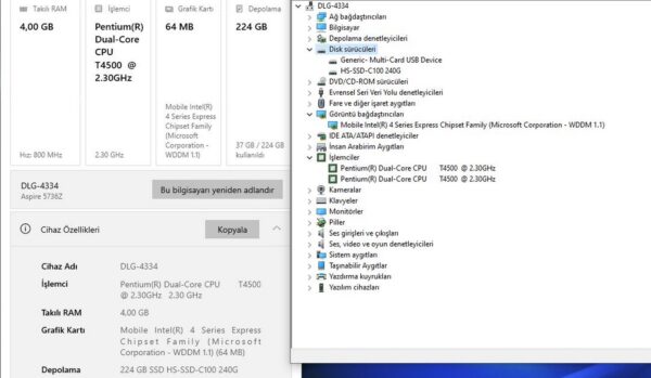 Ekran Kartı: Intel GMA 4500M Paylaşımlı