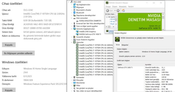 İşletim Sistemi Windows 10 Home